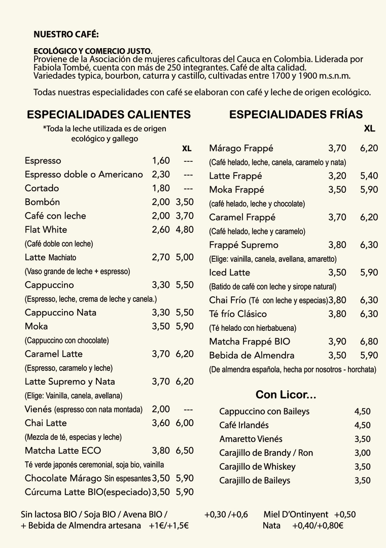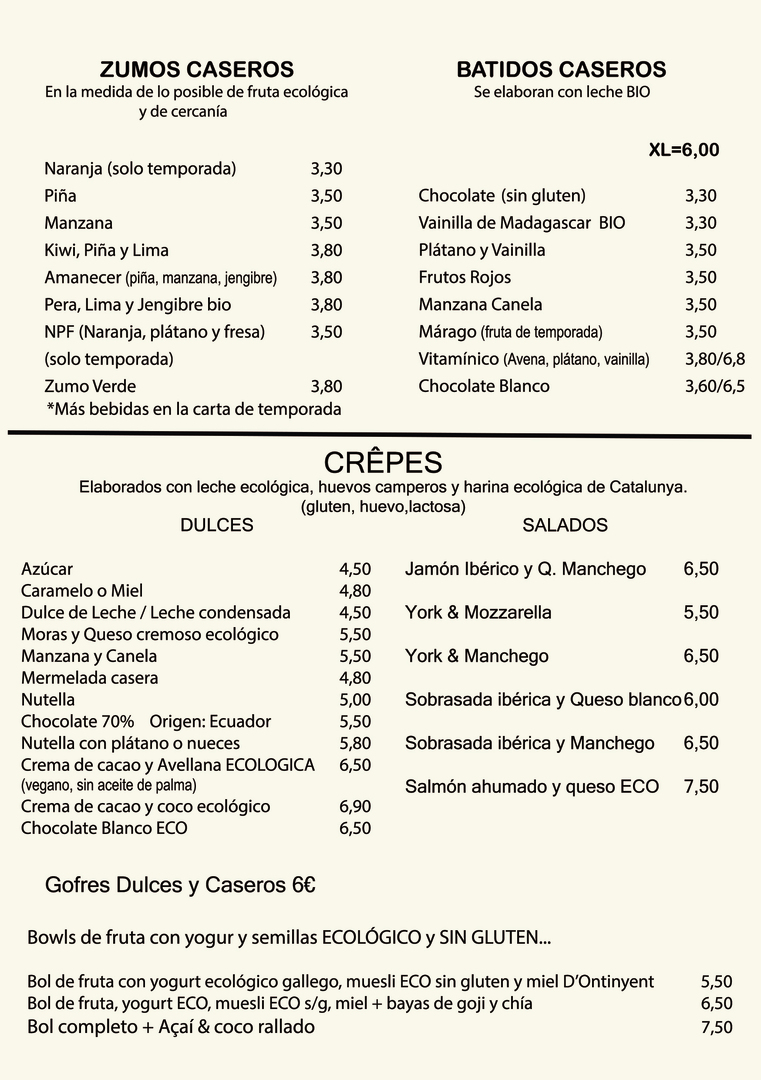 *LA MAYOR PARTE DE NUESTRAS BEBIDAS, CRÊPES Y BOLLERÍA SON